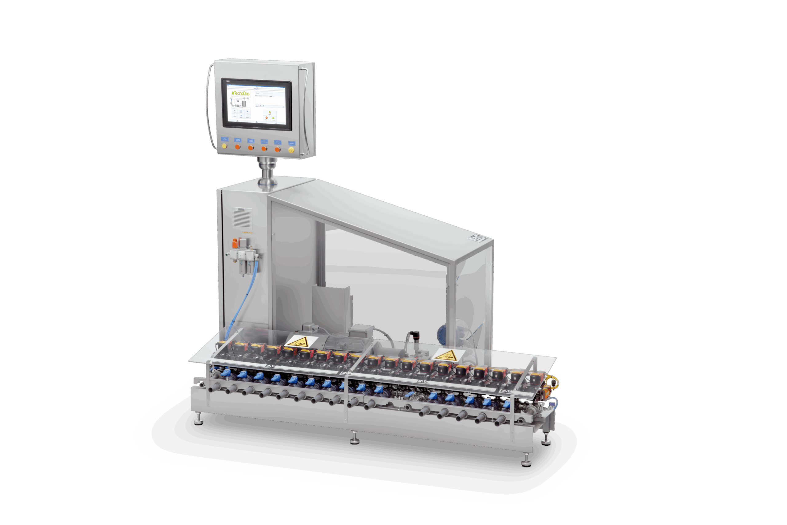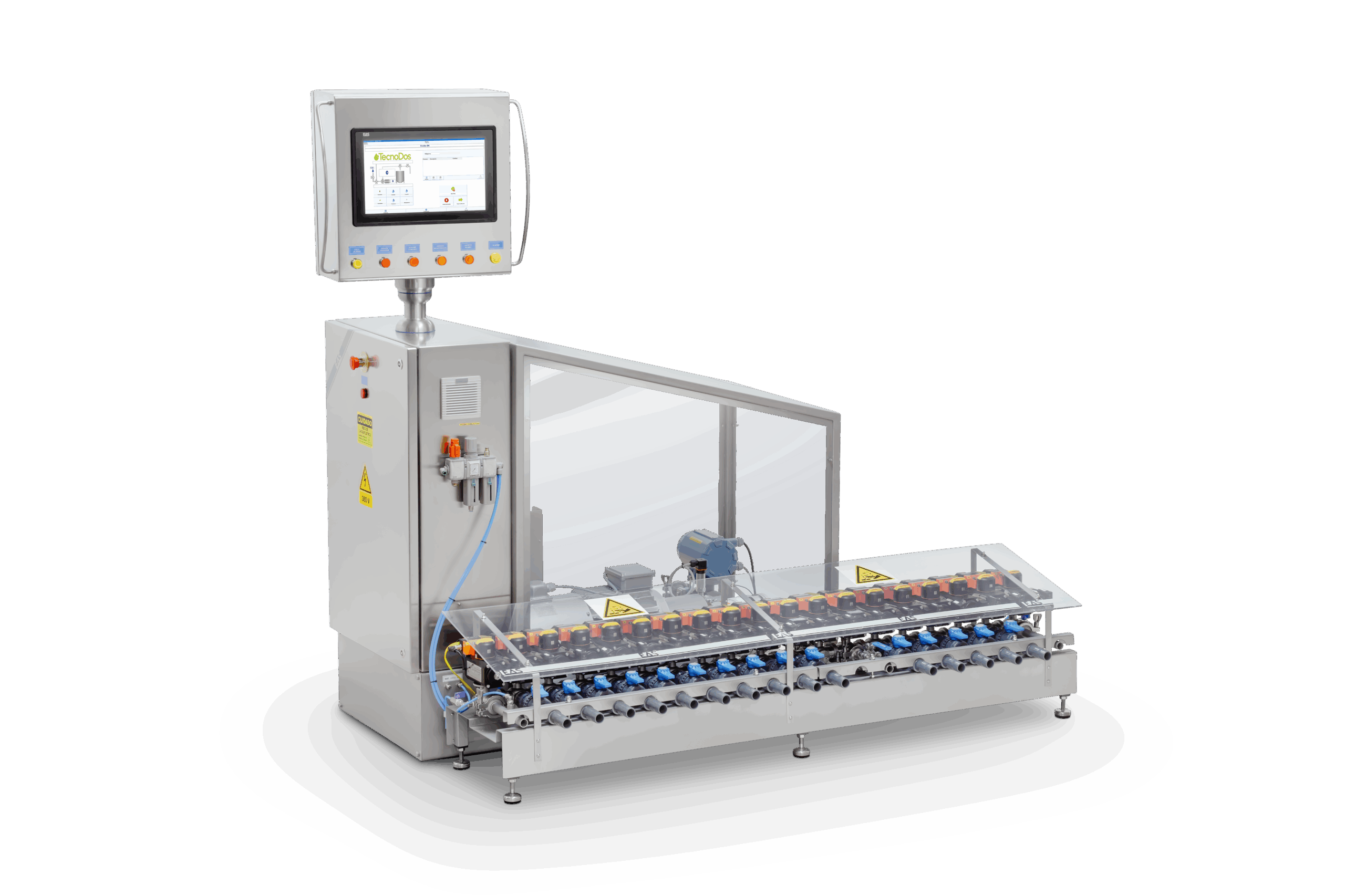 Após a dosagem, ela inicia uma lavação automática da linha e fica pronta para uma nova dosagem. Graças ao seu coletor de alta qualidade, a TecnoDos suporta uma ampla gama de produtos químicos.